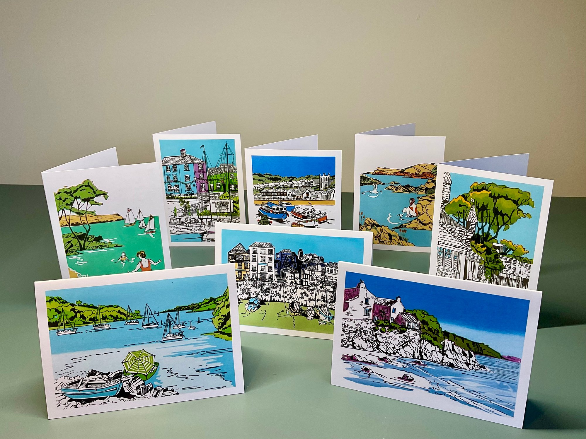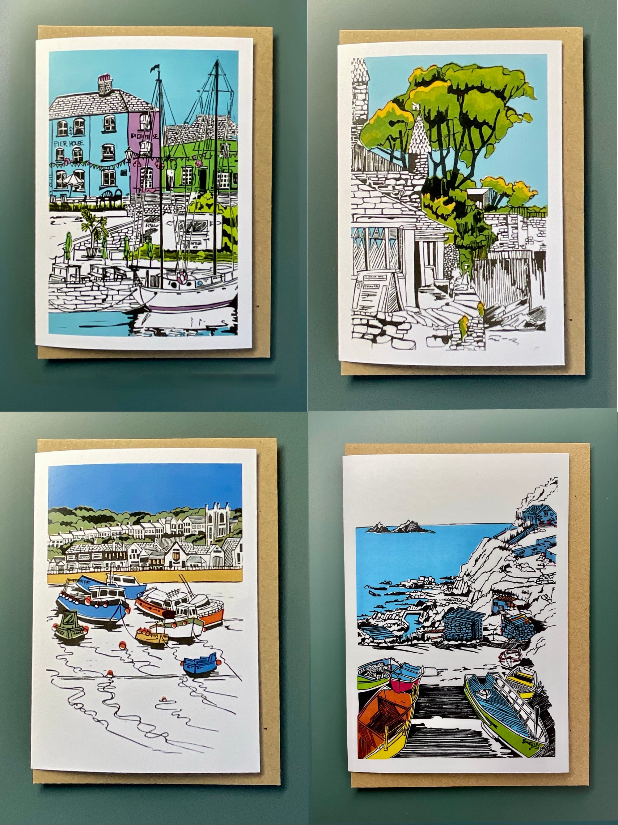 A6 greetings cards featuring my original artworks, digitally printed in Cornwall.