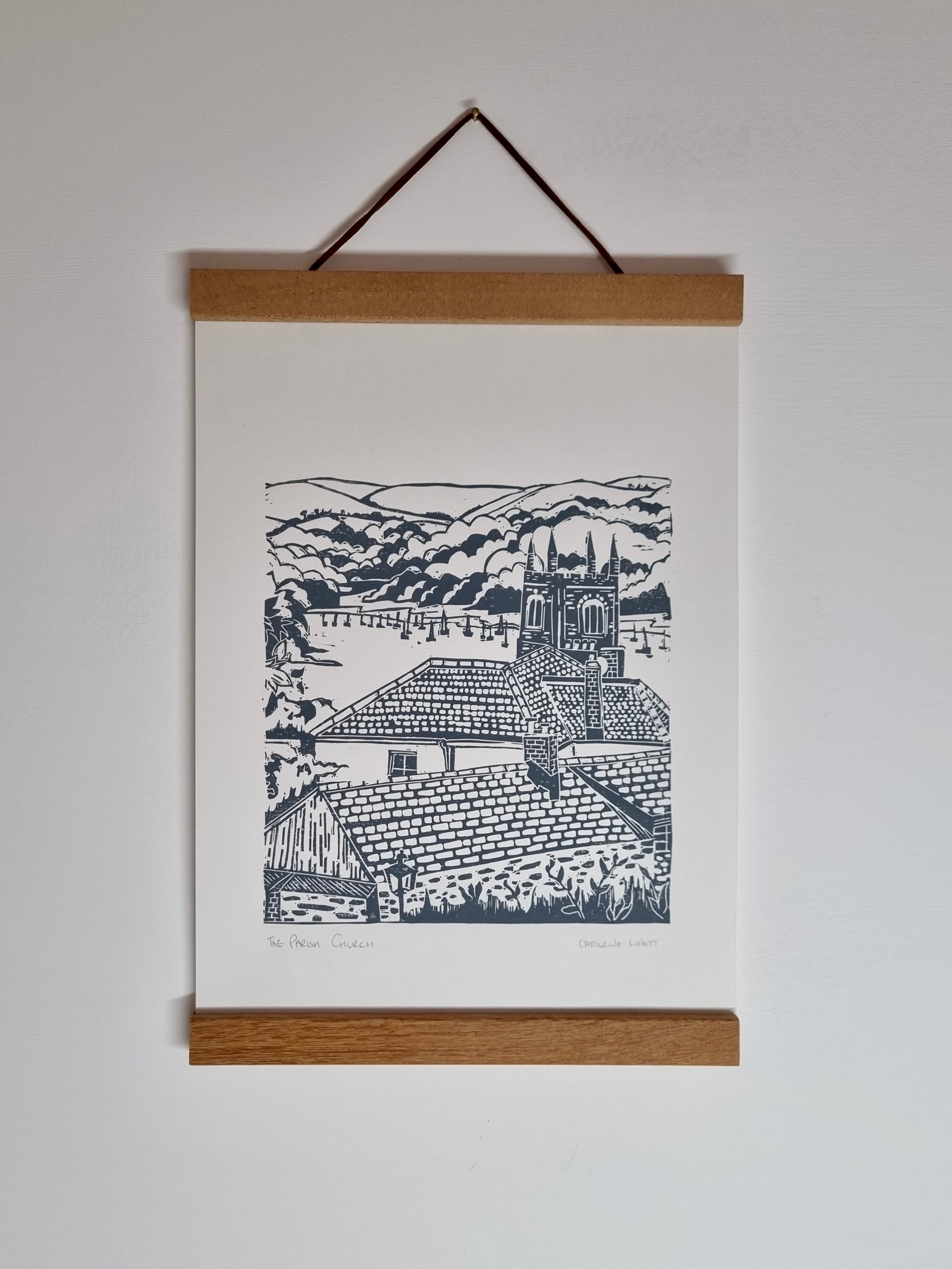 Hand carved lino prints available in a selection of colours inspired by the Cornish coast and countryside.