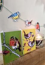 A range of original silk screen and lino print designs, drawn from the birds that visit my garden here in Cornwall. Each pack contains 4 cards, "The Wrens", "Winter Robin", "The Bluetits" and "The Chaffinch"